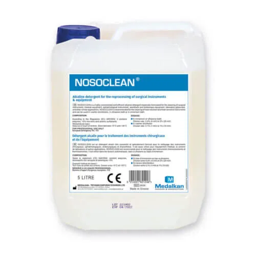 NOSOCLEAN est un détergent alcalin très concentré et de haute efficacité spécialement formulé pour le nettoyage des instruments chirurgicaux, de l’équipement médical, endoscopique et anesthésique, des instruments ophtalmologiques, de la verrerie de laboratoire et applications similaires.